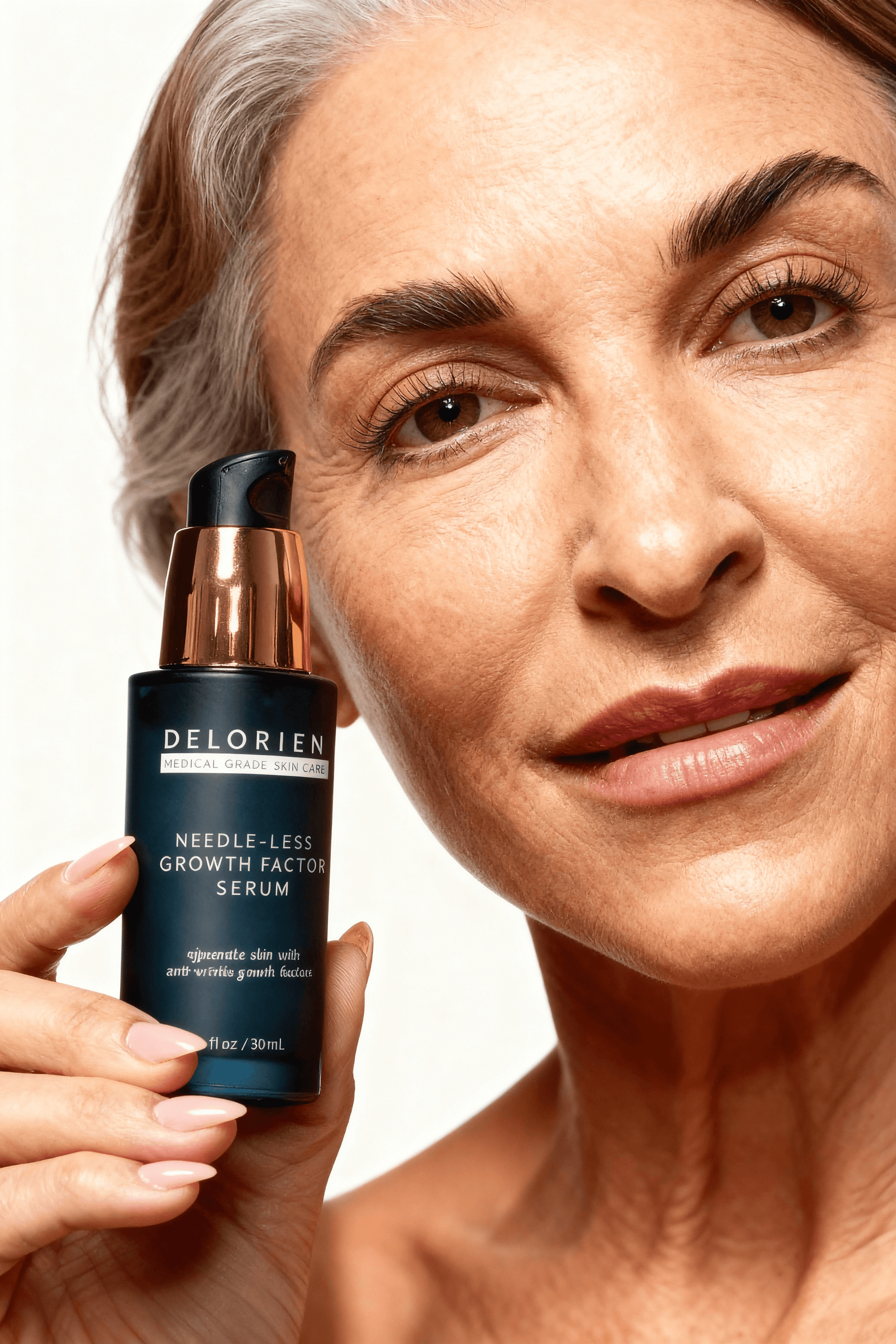 But the options were limited. Professional growth factor treatments cost $300+ per bottle. Invasive procedures required downtime and pain. So I created what was missing: Delorien — a clinically effective, affordable serum with bio-identical growth factors that work.